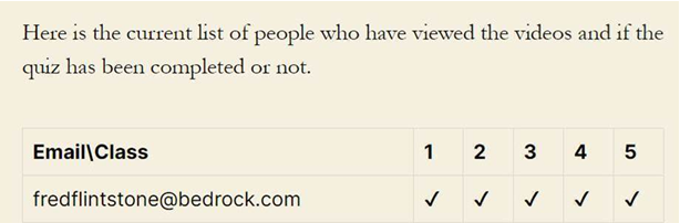 If you’ve done as was requested, you should see your email with a check next to the class you have taken.